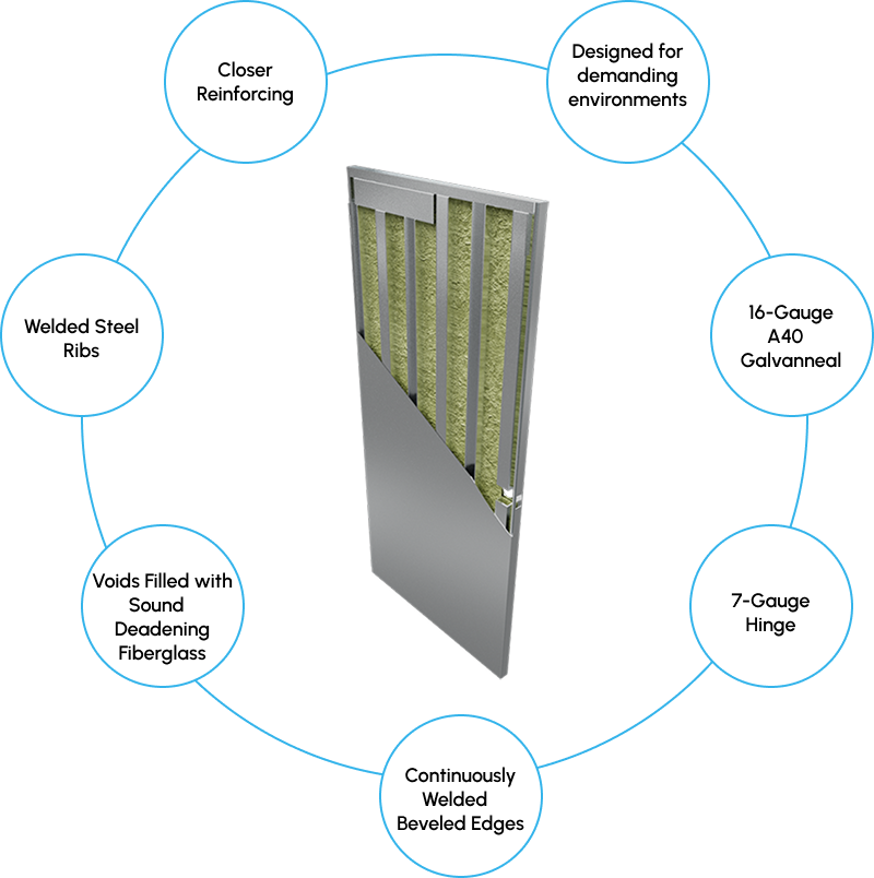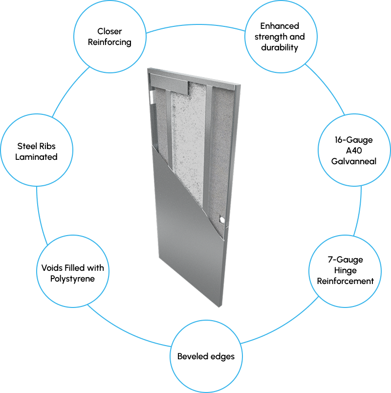 Robust Construction: Commercial steel doors are crafted from high-strength steel, ensuring they can endure heavy use and resist impacts. This makes them ideal for high-traffic areas and environments where durability is crucial.